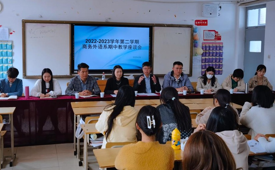 为全面了解教学运行情况,及时发现并解决教学过程中存在的问题,商务外语系于4月24日、25日在2号教学楼B407教室召开期中教学座谈会。国际交流处、教务处、马克思主义学院相关负责人,商务外语系领导班子、各专业带头人、教研室主任、骨干教师代表、各班学生代表参加了座谈会。