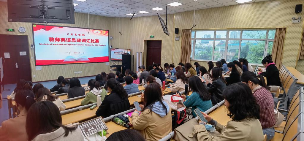 5月4日,公共英语部在1号教学楼智慧教室举行教师英语思政词汇比赛,青岛和泰安校区部门全体教师同步参赛。