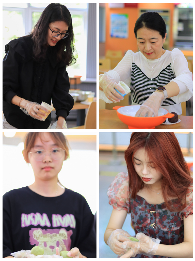 活动邀请了元祖公司资深面点师进行现场指导。现场的师生在集体学习了制作青团的详细步骤后,在面点师的帮助下,大家分工协作,和面、捻青、搓团、包馅……活动有条不紊地进行。不一会儿,一个个圆滚滚的青团就成形了。制作好的青团,被送往蒸箱蒸制。片刻之后,精致剔透的青团新鲜出炉,带着清新且悠扬的青草香。师生们用保鲜盒将新鲜出炉的青团装好,与朋友分享,共探青团的时令之美,共享劳动后收获的喜悦。