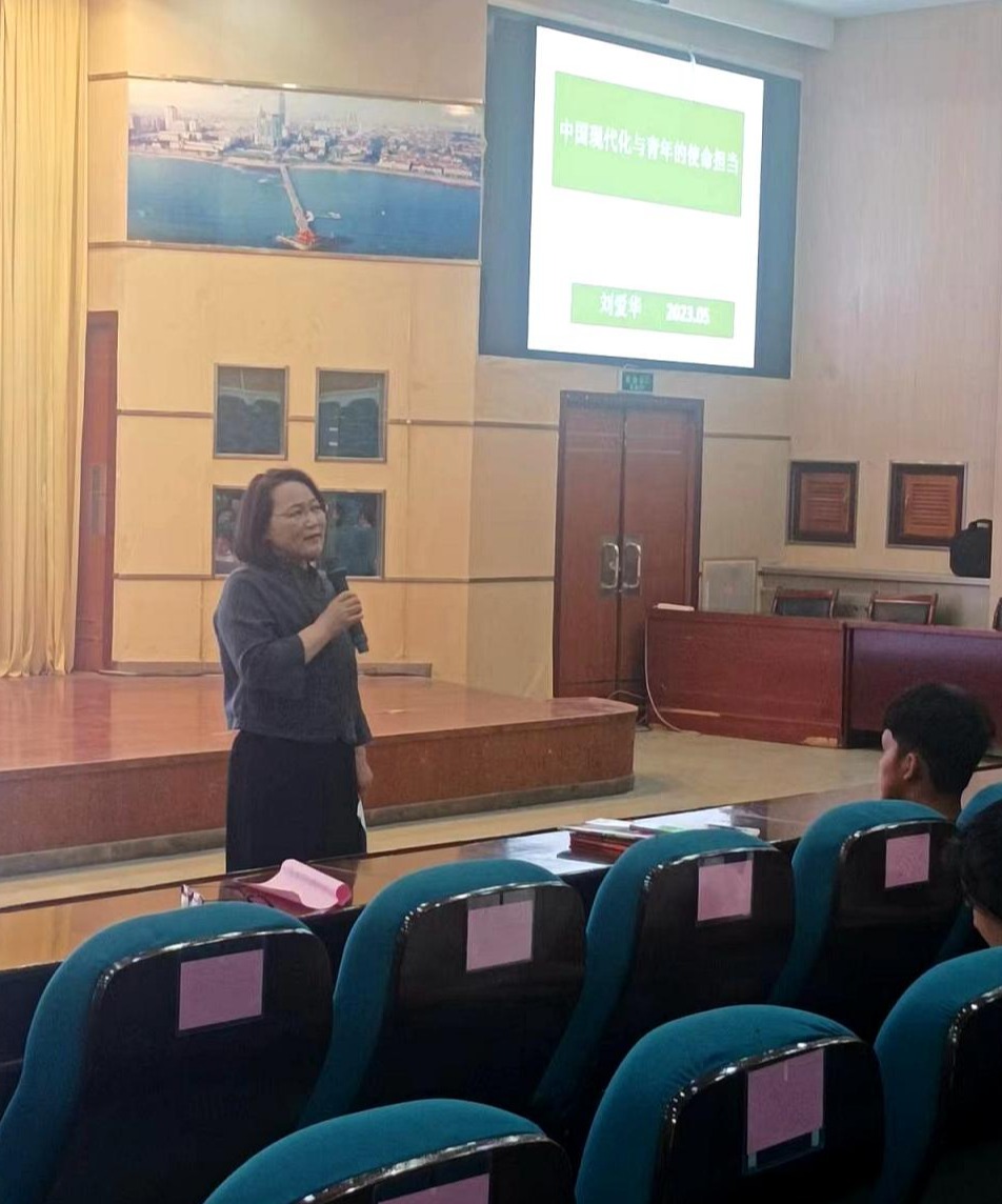 刘爱华以《中国式现代化与青年的使命担当》为题,从中国式现代化、机遇与挑战、使命与担当等三方面,以全新的视角解读中国式现代化与青年的使命担当。通过本次讲座,引发了同学们对青年人应具备的领导力、担当力、创造力进行深入思考。