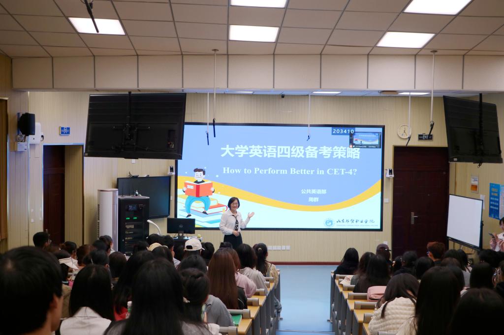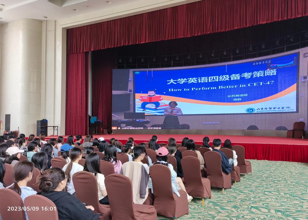 5月9日、10日,第十四届“1+X证书VETS”杯英语文化节系列讲座围绕大学英语四六级备考这一主题在青岛、泰安两个校区举行了两场讲座。