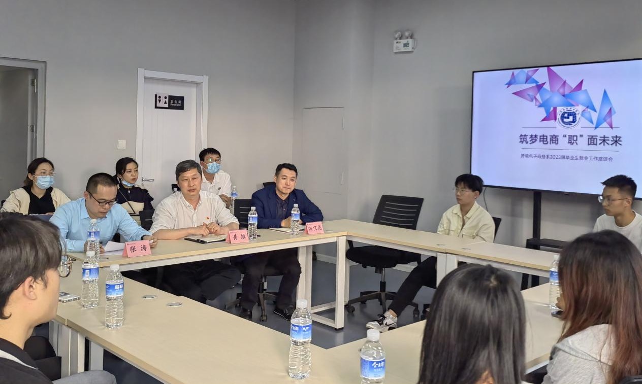 5月18日,跨境电子商务系在山东省跨境电商公共实训基地举行2023届毕业生就业工作座谈会。党委副书记黄维、学生工作处副处长张涛、跨境电子商务系学工办主任张宝龙、全体辅导员老师及毕业生代表参加会议。