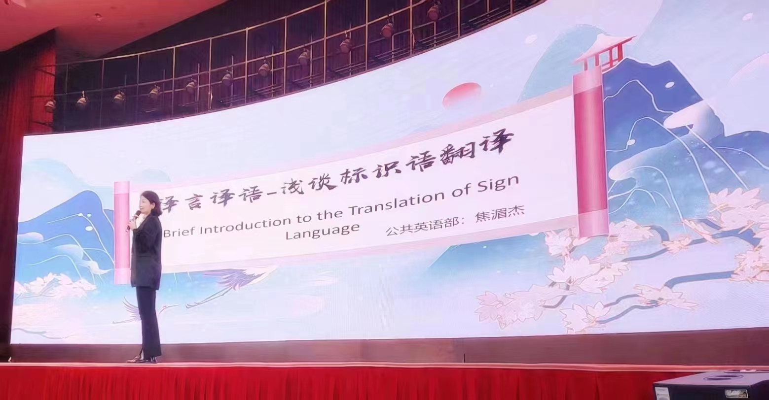 焦湄杰围绕“译言译语——浅谈标识语翻译”的主题,讲授了常见标识语的正确译文。她以大量出现在公共场所的英语错误标识为例,图文并茂地解析了各大翻译软件常见的错译,以及在跨文化交流上造成的误会和障碍,提醒学生在用翻译软件时要去伪存真,学习要脚踏实地,稳扎稳打。