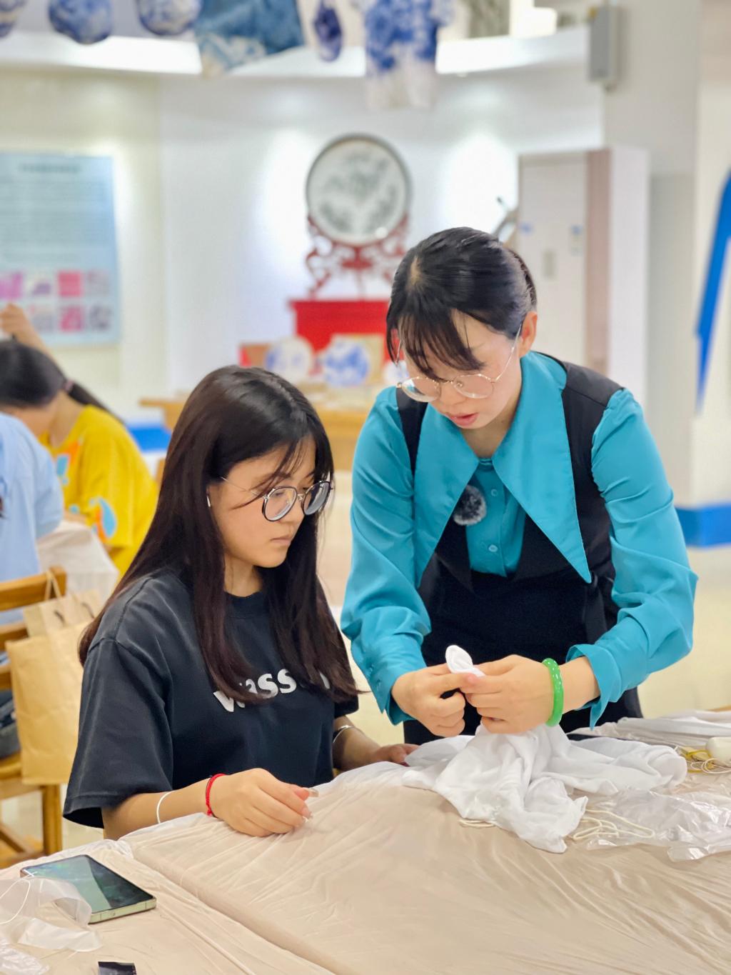 活动中,多年研究蓝印花布的刘慧,以生动有趣的形式和丰富详实的图片为读者一一讲解了蓝印花布的起源、发展、特色、制作工艺,让读者对蓝印花布有了初步的了解。实践操作中,在刘老师的精心指导下,读者们创作出了一件件饱含独特创意的蓝印花布艺术品,包括T恤、书包、帽子、手帕等,每一件作品都是独一无二的存在。