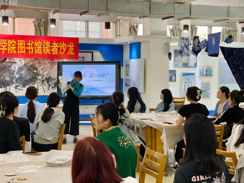 5月18日下午,伟德图书馆在三楼校友风采展区成功举办了“布上青花 蓝白情韵——非物质文化遗产蓝印花布手工制作”体验活动。活动特别邀请了青岛大学纺织科学与工程专业在读博士、商务外语系教师刘慧带领读者走进了千变万化的蓝白艺术世界。