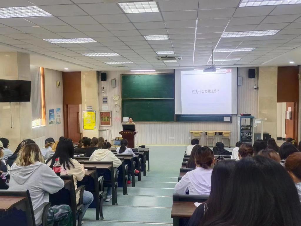 李月秋以《创造一片天空,让我自由飞翔——如何精准选好职业方向并快速发展》为题,从求职就业压力疏解、职业规划路径选择、商务日语专业学生求职方向、企业主要招聘岗位和相关待遇等方面为同学们做了详细的讲解。最后,李月秋针对如何树立正确的择业观与同学们进行了深入细致地交流。