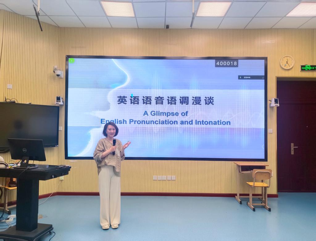 近期的系列讲座分别于23、24、30日共进行3场,分别围绕英语学习能力、学习方法与技巧以及英语语音语调展开。庞俊萍从学生常见的英语学习困境入手,引导学生自信应对,从词汇、语法、听力、阅读、口语和写作六大语言学习能力入手进行系统认知和训练,用有效的学习方法实现英语学习的两个终极目标:理解别人,表达自己。王囡囡通过英语诗歌、小说、名人演讲、影视等艺术作品告诉学生英语既是交流沟通的工具,更是文化与科技的载体,并结合自身学习英语的经历,分享了有效学习英语的4个关键要素:“enjoyment”(乐趣)、“methods”(方法)、“persistence”(坚持)与“faith”(信心),引导学生把英语学习由一门枯燥的课程变为每天要做的有趣活动。肖凤以26个英文字母开篇,介绍了英式英语和美式英语在发音上的主要区别,指引学生不仅要关注语音语调,弱读、连读等英语技巧的训练也尤为重要,并结合经典的例子和实战训练直击中国学生语音学习的盲区和难点,引发学生共鸣。