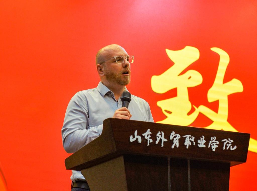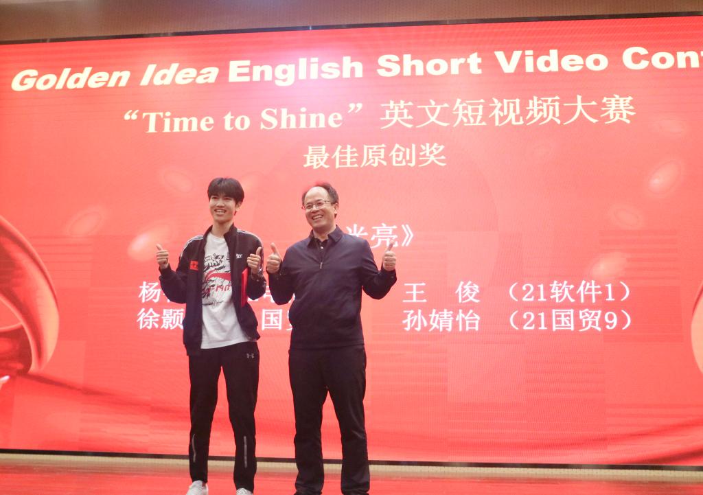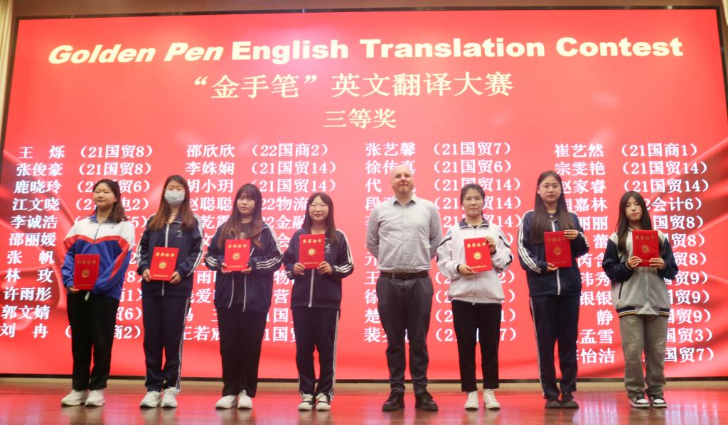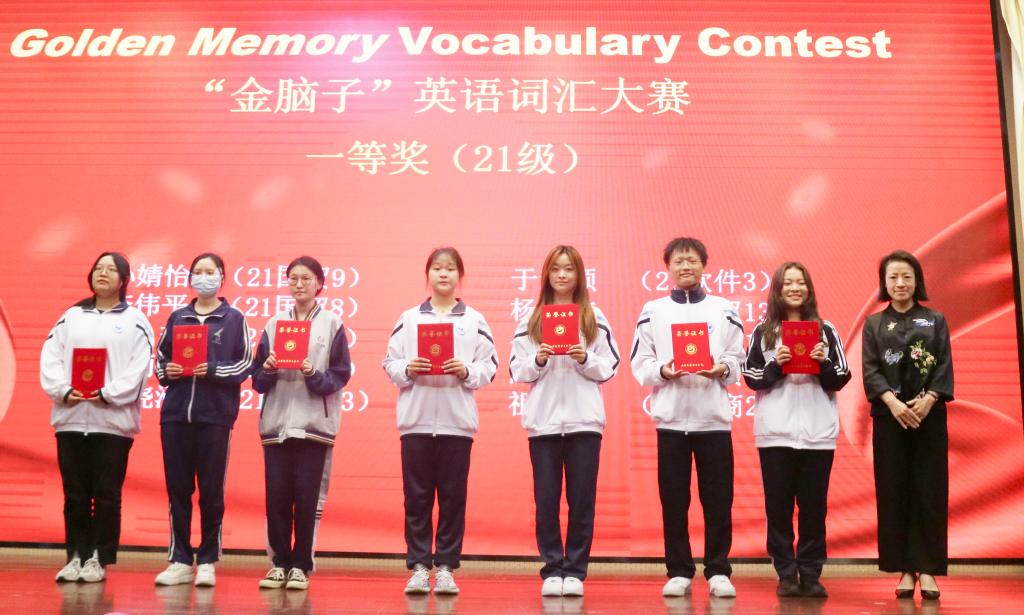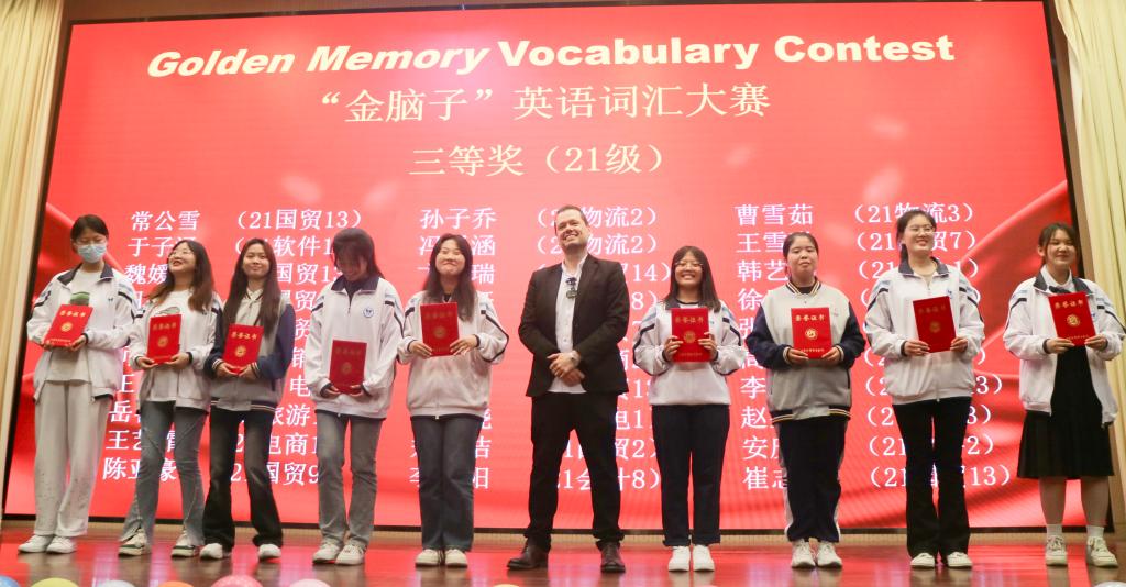 外教Benjamin在致辞中陈述了对本届主题“外国语·中国心”理解,认为语言是人类交流与沟通的桥梁,是实现人类多样性生活的有利途径,表达了对学生们美好未来的期待。嘉宾为“金牌挑战”系列比赛的获奖学生代表颁发了荣誉证书。