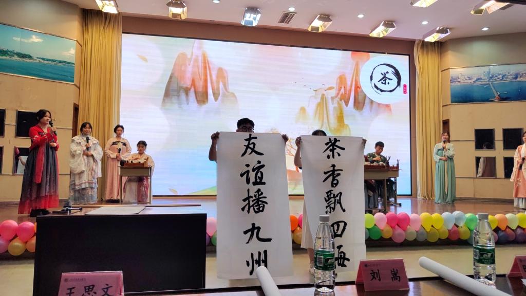英文歌曲大赛一等奖获得者韦英姿(22级人工智能1班)、冯贝宁(22级金融1班)表演了歌曲《Monsters》,英文配音大赛获奖选手夏雪(21级国贸8班)、梁嘉妮(22级关务班)等同学带来了声情并茂的电影配音片段,让观众现场体验了一次原声再现。英语口语大赛一等奖获得者闫嘉林(22级会计6班)和英语俱乐部演讲社成员一起演绎了英文朗诵《少年中国说》,把对祖国的热爱融入字里行间,以饱满的情感、自信大方的形象,展现了伟德学子的风采。英语俱乐部借助英语英语为观众呈现了《华韵》系列中华传统优秀文化——《华韵﹒汉服》、《华韵﹒茶艺》。汉服裙带飘扬间散发着中华文化的深厚气韵,现场悠远的古筝旋律和表演者优雅的茶艺表演、墨香飘散的书法和谐地融合在一起,伴随着英语讲述者的娓娓道来,生动阐释了本届英语文化节的主题。英文话剧《音乐之声》引发观众对美好生活的无限热爱。公共英语部的教师们带来了经典英文歌曲联唱。拉丁舞串烧表演通过优美的舞姿诠释出青春的姿态,感染着在场的观众。闭幕式在《梦想家》的合唱歌声中落下帷幕。