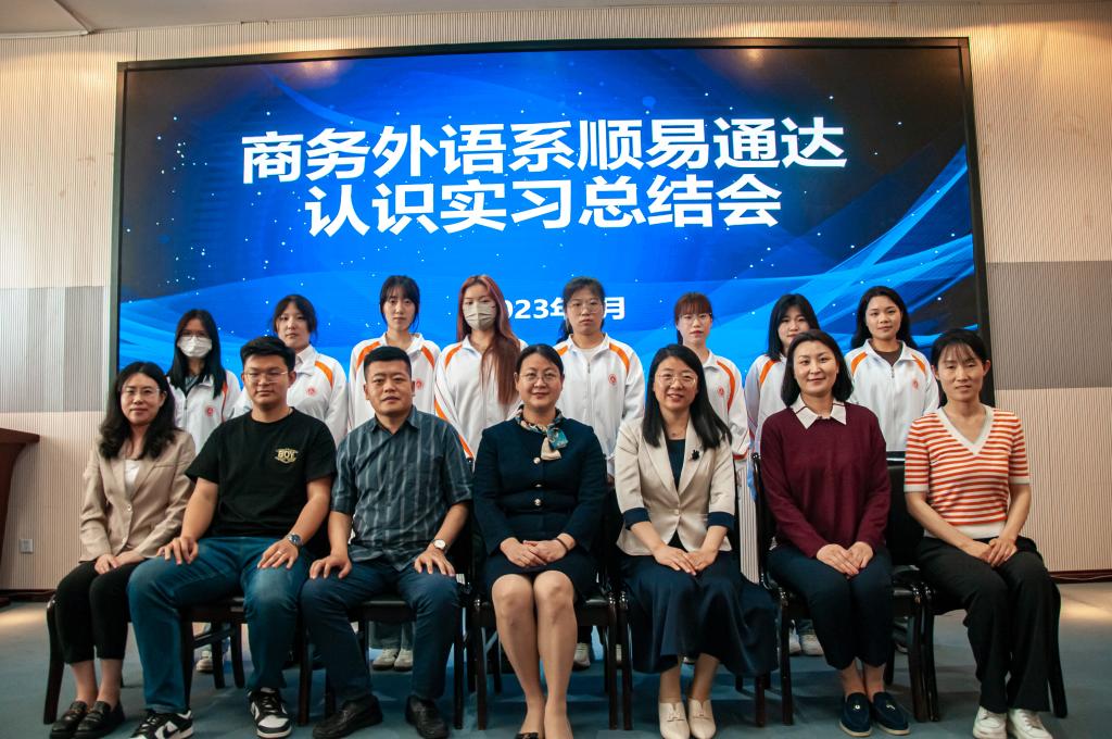 6月1日下午,商务外语系在图书馆四楼会议室举行顺易通达认识实习总结会。青岛顺易通达供应链有限公司总经理邱守彬、海外运营总监胡相宇、副院长刘珉、商务外语系党政领导和商务外语系师生代表参加了会议。
