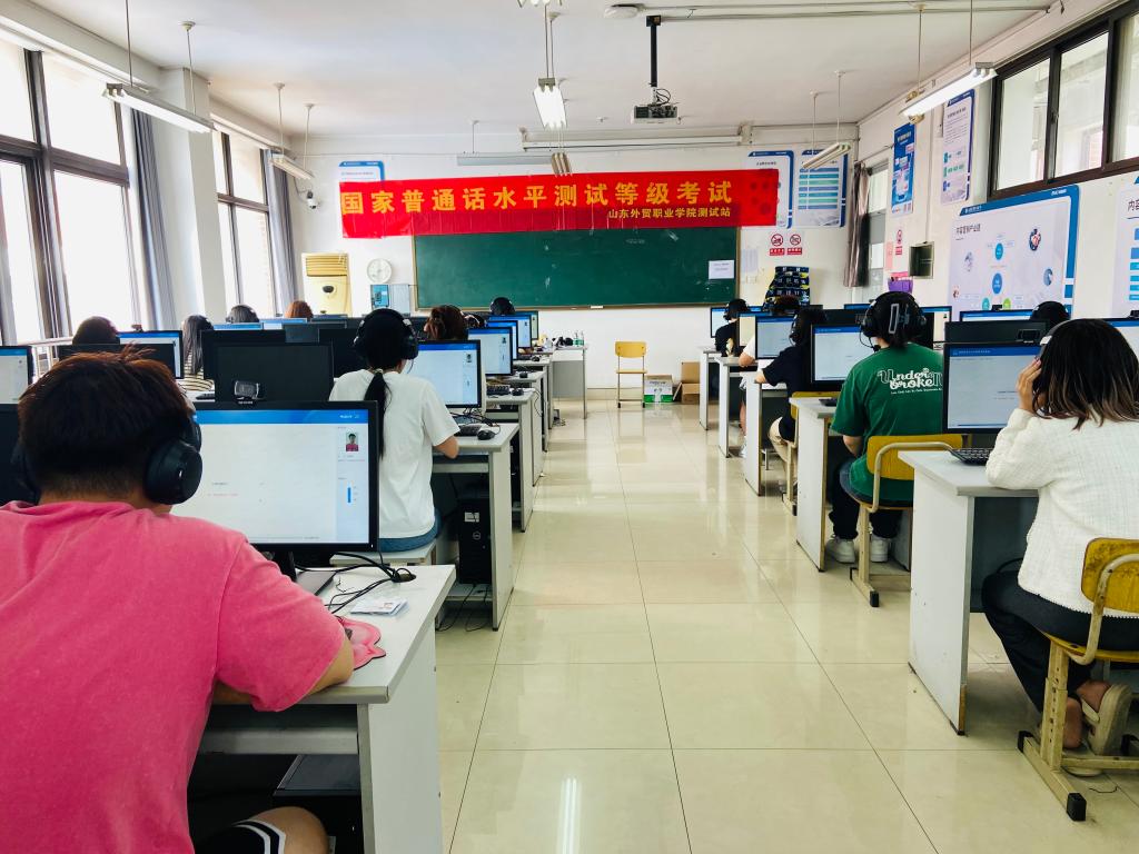 6月18日,伟德2023年上半年普通话测试工作在2号教学楼C座4层展开。全院808名学生参加了本次测试,共计27场次,副院长刘珉到现场进行了检查指导。