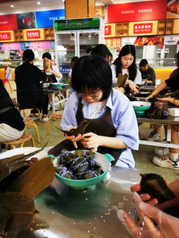 6月20日上午,经济管理系旅游教研室在书香味道二楼举办“‘彩’‘粽’端午,传承非遗”活动。旅游管理专业的同学们亲自动手编制了精美的端午五彩绳,包制了独特形状的端午粽。
