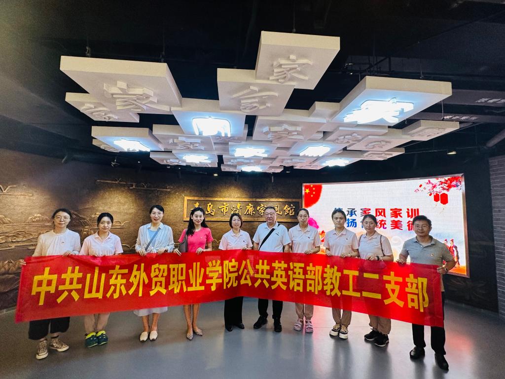 为深入开展学习贯彻习近平新时代中国特色社会主义思想主题教育,提升党性意识,深入贯彻落实党的二十大精神和习近平总书记关于“红色基因就是要传承”“树立新时代的家庭观”的重要指示精神,7月12日下午,公共英语部教工二支部和党建共建结对单位商务厅幼儿园党支部组织党员代表到青岛市清廉家风馆开展党风廉政警示教育活动。
