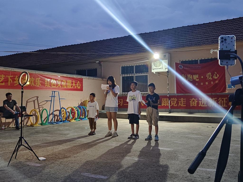 “奔跑吧 爱心”团队组织编排“文艺下乡送欢乐 红色文化暖人心”文艺晚会。在村委广场进行演出,朗诵、歌曲、舞蹈等节目热情讴歌了中国共产党百年来的光辉历程,深情表达了队员和孩子们对党的无限热爱。本次晚会采用抖音进行直播,当地村民、校内学生、校外人士都同步观看了晚会直播、参与了线上互动,大幅拓宽了红色文化传播覆盖面,提升了红色教育的实效。