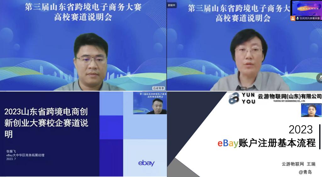 7月25日上午,跨境电子商务系召开第三届山东省跨境电子商务大赛高校赛道说明会。山东省跨境电子商务产教联盟秘书长、跨境电子商务系主任张鹏刚,副秘书长仇利克,eBay大中华区招商经理张振飞和云游物联网运营及项目经理王瑞参与会议。600多名高校师生通过腾讯会议在线参会。