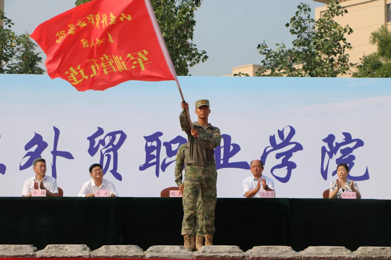 23级旅游专业新生李书瑶代表参训学员郑重宣誓,将尊重教官,服从命令,听从指挥,磨练坚强意志,锻炼过硬体质,努力完成规定的训练任务,以饱满的激情投入到军训之中。