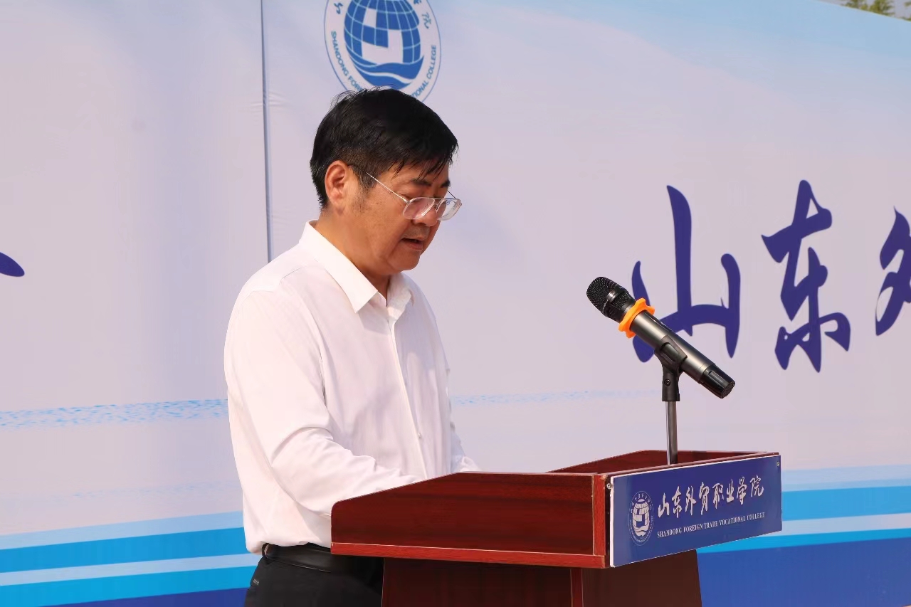 高成作军训动员讲话。他首先代表学院对全体教官表示感谢,并向2023级新同学表示热烈欢迎。他指出,军训是进入大学生活的第一篇章,是国防教育的关键环节,希望同学们提高认识,积极投入,用军人的标准严格要求自己,以新一代“山外人”的身份传承薪火,磨砺坚韧勇敢、百折不挠的意志品质,秉承“德能并举 知行合一”的校训,在青春的赛道上奋力奔跑,为强国建设、民族复兴贡献青春力量。