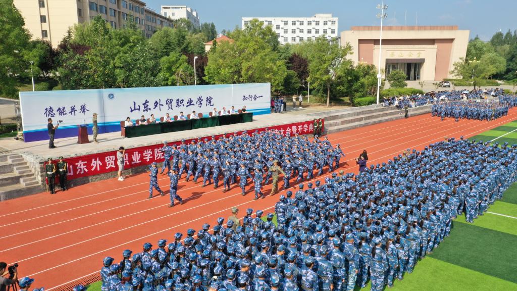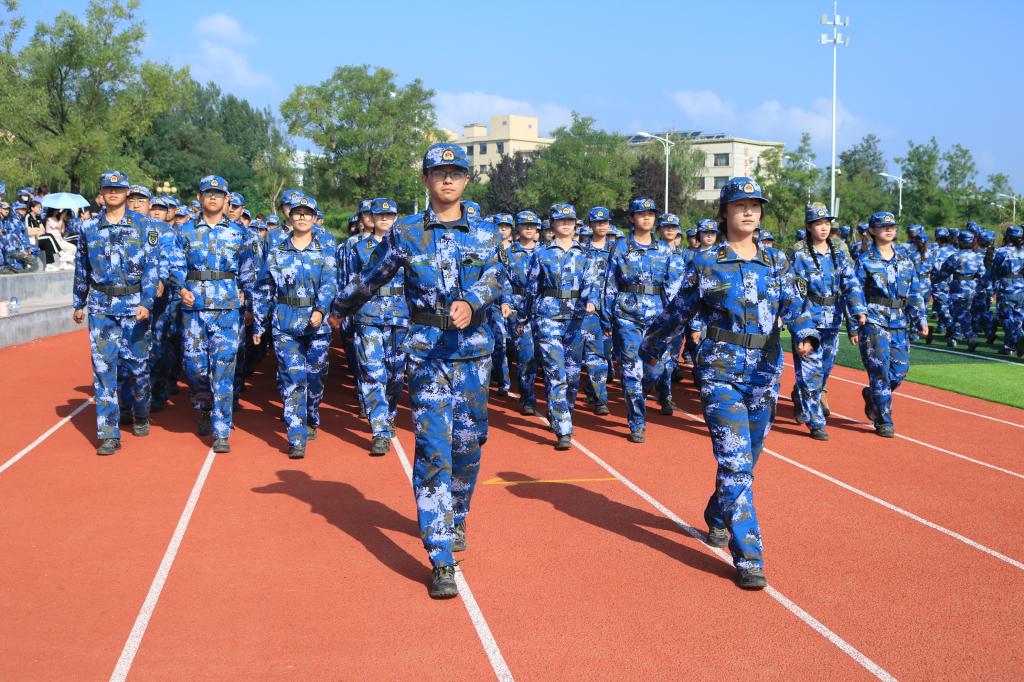 典礼在雄壮的国歌声中拉开帷幕。全体参训学生身着戎装,整齐列队,列阵依次正步经过主席台。坚定的摆臂、整齐的步伐和嘹亮的口号彰显着山外新一届学子热情饱满的精神面貌。方队会操表演与军体拳团体表演刚劲有力、整齐划一、斗志昂扬,赢得现场师生阵阵掌声与喝彩。