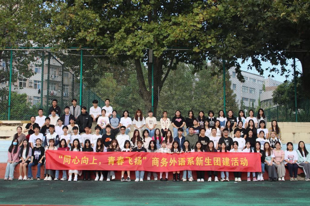 9月14日下午,商务外语系在北校区田径场举行了“同心向上,青春飞扬”新生团建活动。2023级全体新生、新生班代、2022级部分班长、团支书以及辅导员参与此次活动当中。