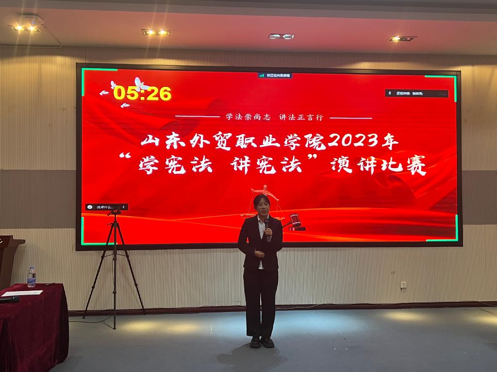 演讲比赛分为系部初赛和校级决赛2个环节进行,最终共有9名参赛选手入围校级决赛,选手们围绕“学宪法 讲宪法”主题,从社会热点、案例故事、自身体会等方面切入,用生动的语言、丰富的实例和清晰的逻辑,深入浅出的介绍了宪法与日常生活的关系,将宪法的价值和精神传递到了现场每一位师生的心中。法治素养知识竞赛以宪法内容为核心,结合党的二十大精神、习近平法治思想、民法典等法律法规,采用线上答题的方式组织开展。