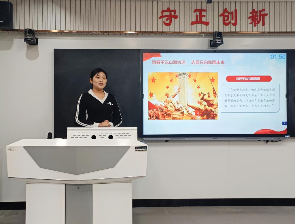 为学习践行党的二十大精神,深入推动习近平新时代中国特色社会主义思想进教材、进课堂、进学生头脑,充分发挥“大思政课”实践教学育人作用,9月25日,马克思主义学院在2号教学楼C304智慧教室举办学院第二届大学生讲思政课比赛。党委宣传部副部长谭晓栋、教务处副处长李培麟、基础教学部副教授孙峻旭担任评委。