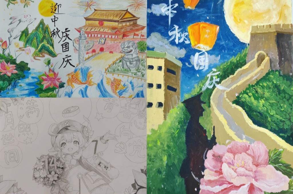 “品秋韵,迎国庆”画报评比活动鼓励同学们对节日文化进行形象化展示和故事化表达,用生动的笔触描摹出一幅幅凝聚爱国热情的画报。