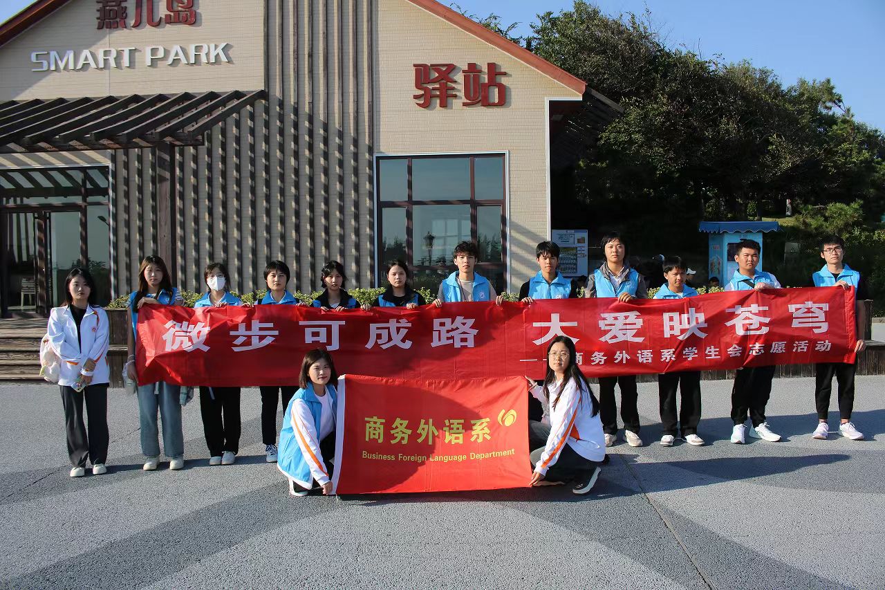 10月1号,商务外语系“商小志”志愿服务队在青岛市市南区举办了“微步可成路,大爱映苍穹”海边健步行志愿活动,并对周边垃圾进行了清理。志愿者们用“奉献、友爱、互助、进步”的志愿精神,助力“十一”黄金周,向祖国献上祝福。