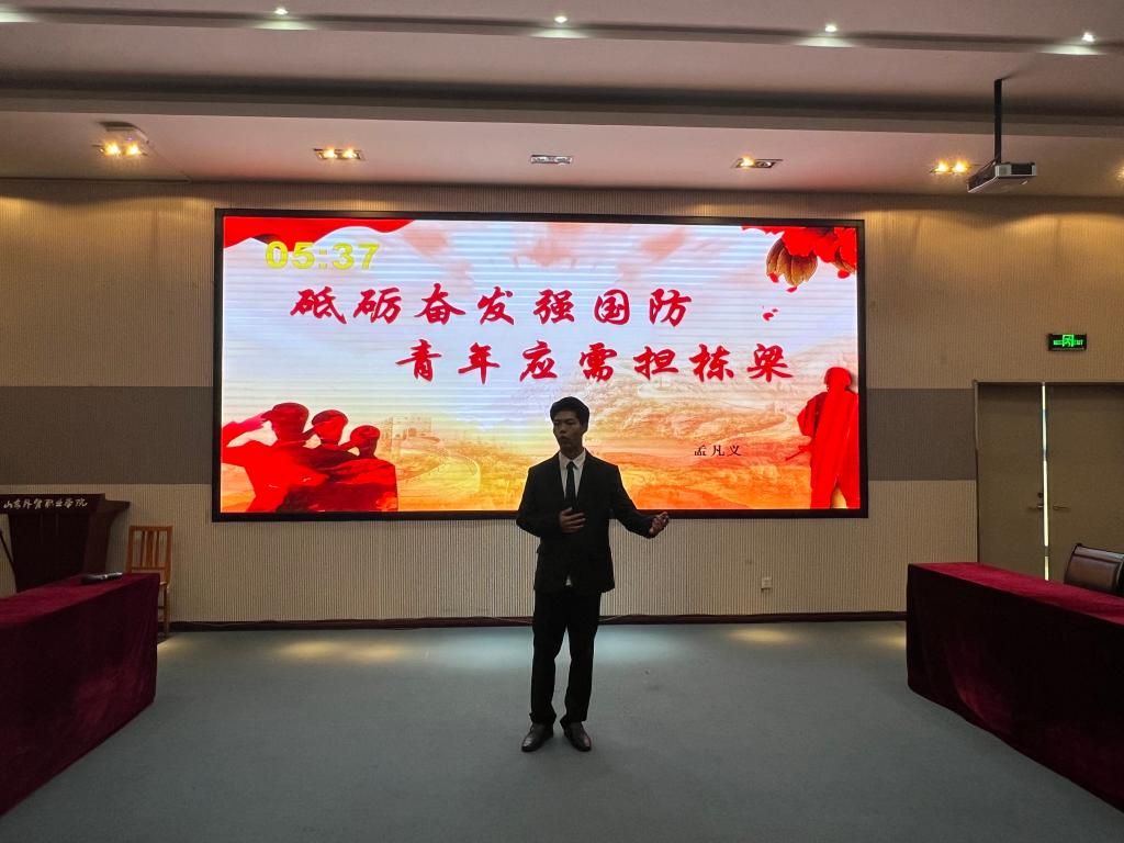 为深入开展国防教育工作,加强学生国防意识,激发学生崇军尚武、参军报国的热情,10月9日,由学生工作处主办的2023年“爱我国防”演讲比赛在图书馆四楼会议室举行。