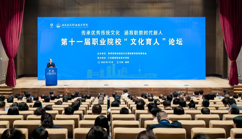 10月14-15日,第十一届职业院校“文化育人”论坛在江苏徐州召开。本次论坛由教育部职业院校文化素质教育指导委员会主办,江苏建筑职业技术学院承办,以“传承优秀传统文化,涵育职教时代新人”为主题。来自全国156所职业院校的代表参会,总结交流“文化育人”先进经验,共商职业院校文化素质教育发展。