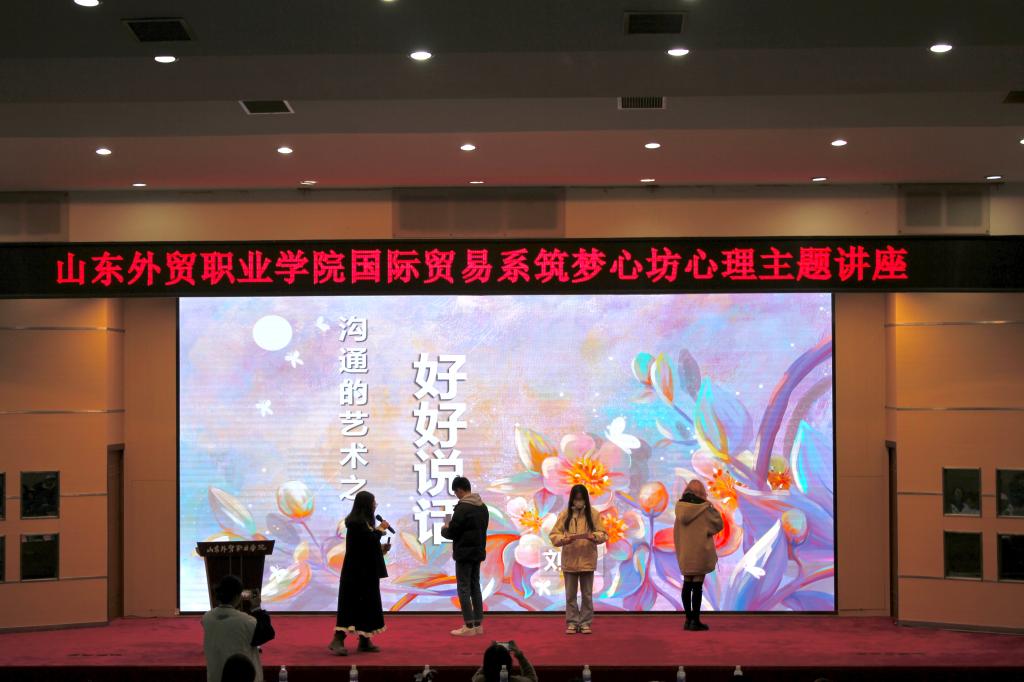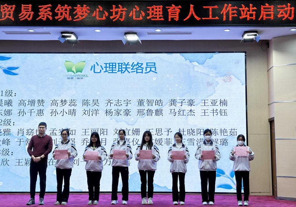 仪式上,王泓博介绍了工作站的成立背景、工作内容等情况,引导同学们关注心理健康,提升积极心理品质。孙巧奎与王泓博为心理育人工作站揭牌。国际贸易系党总支副书记桑伟为曲媛媛颁发工作站校内指导专家聘书,国际贸易系辅导员潘伟、孙璐、孙冲向工作站心理联络员颁发聘书。仪式后,国际贸易系辅导员刘腾为同学们进行了题为《沟通的艺术——好好说话》的心理主题讲座,刘浩为同学们进行了校园安全主题讲座。