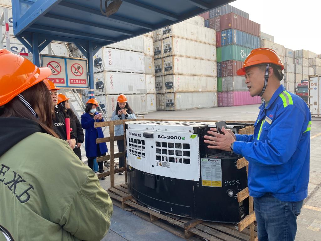 在捷丰及胜狮的集装箱场站,准“现场工程师”们在企业导师的带领下,系统学习了场站中控操作、集装箱调度与管理、国际货物仓储等专业知识,并在导师指导下现场进行了实操与演练。