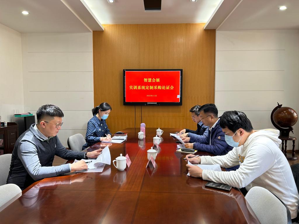11月21日,国际商旅服务专业群在图书馆三楼会议室召开智慧会展实训系统定制采购论证会,专业群建设小组组长谭书旺、教务处副处长魏龙吉、信息技术中心工程师卢琇泽、专业群建设小组副组长张震、会展策划与管理专业代理专业带头人兼教研室主任周菲菲参加论证会。