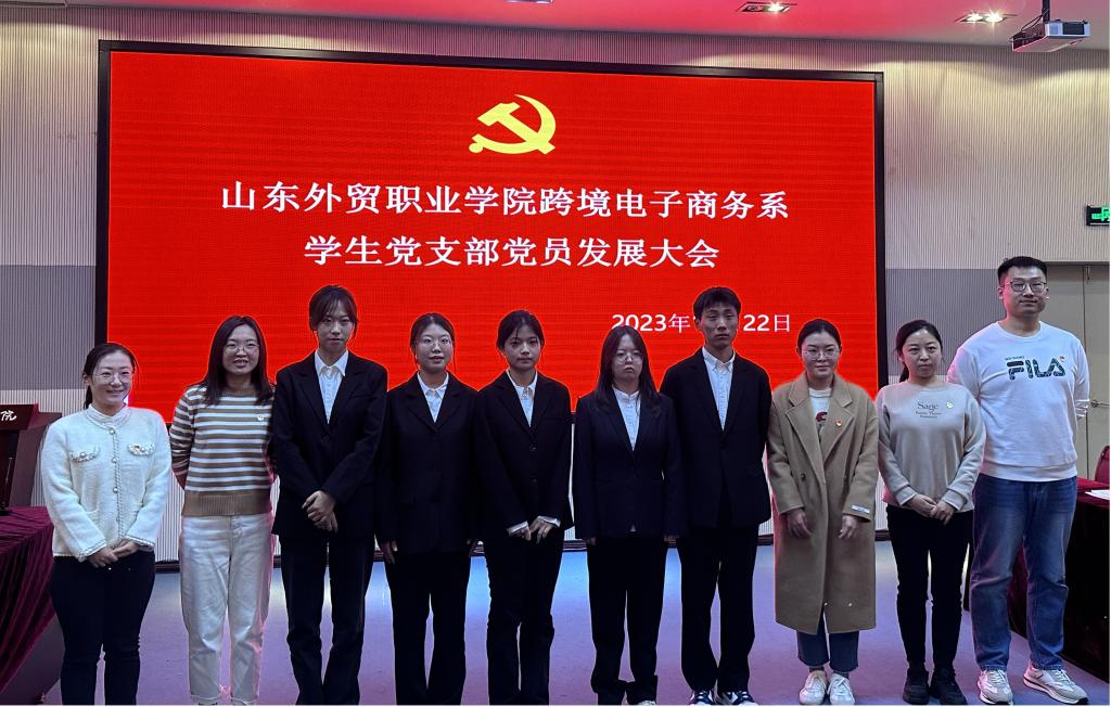 11月22日,跨境电子商务系学生党支部在图书馆404会议室举行党员发展大会,会议由党支部书记梁爽主持,支部全体党员参加会议。