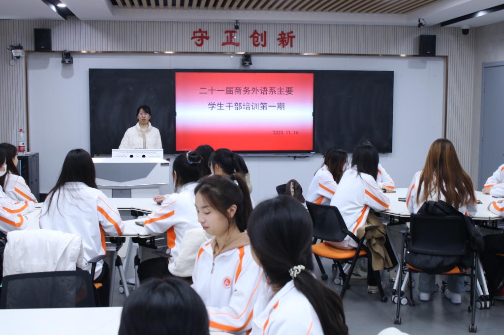 为加强学生干部队伍建设,提高学生干部的综合素质和创新协作能力,商务外语系团总支在十二月份开展了系列团学干部培训活动,培训分为专题讲座、素质拓展环节,涵括政治理论学习、业务实操、素质拓展等内容,商务外语系全体辅导员、学生会成员参加了本次系列活动。