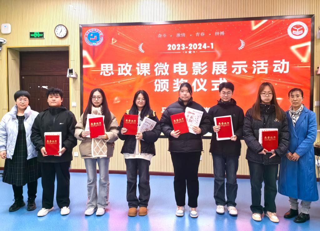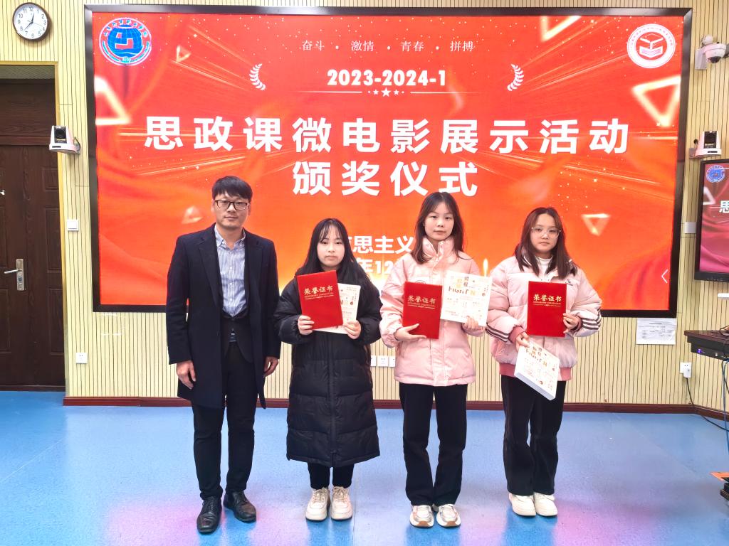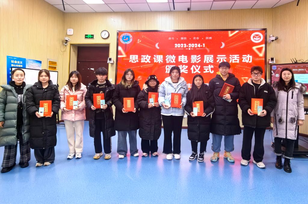仪式上,马克思主义学院教师刘丽红宣读了2023年度思政课微电影比赛获奖名单。本次微电影比赛自11月启动以来,得到了学生们的积极响应和热情参与。2023级所有班级在思政课教师指导下认真制作参赛作品,展现了大学生良好的思想道德和法治素养。最终,18项优秀作品脱颖而出,分获一二三等奖。教师代表为获奖团队颁发了荣誉证书和奖品。
