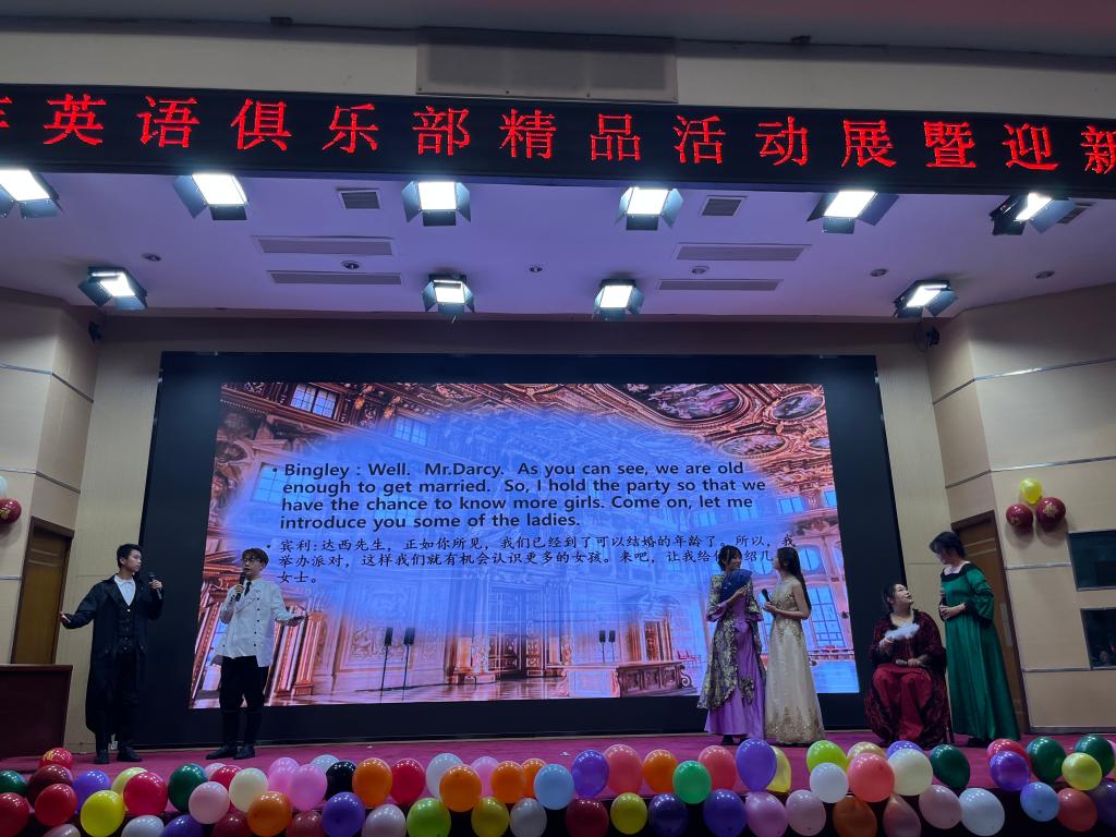 本次活动以汇报演出和优秀社员表彰为主线,伴随着俱乐部Babysinger音乐社带来的歌曲“Intentions”“Baby”和“Calling my phone”,悦声四起,现场一片荧光闪动;随后,俱乐部英文话剧社带来了《警察与赞美诗》和《傲慢与偏见》两部精彩话剧,通过讲述流浪汉苏比探寻归宿的故事以及对《傲慢与偏见》中三段不同爱情故事的精彩演绎,引发观众们对人生意义以及爱情真谛的思考;英文演讲与主持社的社员们借助声音的魅力,让观众沉浸式感受到了配音的魅力,而接下来的脱口秀《谁不说我家乡好》则充分展现了山外学子对家乡的赞美和对祖国发展的自豪感;在疯狂英语社的英文朗诵《听我说》中,演员们化身“海洋”“雨林”“天空”等,呼吁伙伴们一起保护环境,爱护地球。晚会进行期间,还对社团活动中涌现出的优秀社员23级国贸7班杨新琦、23级软件1班王国秀、23级旅游1班高欣宇、22级会计6班闫嘉林、23级物流2班李嘉欣等27名社员进行了表彰。最后,在俱乐部社团活动精彩回顾和《See you again》的优美合唱声中,“2023年英语俱乐部精品活动展暨迎新晚会”圆满落幕。