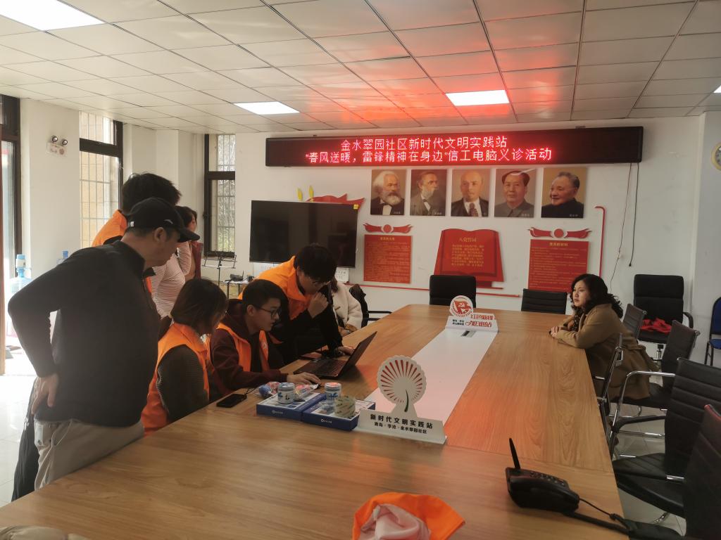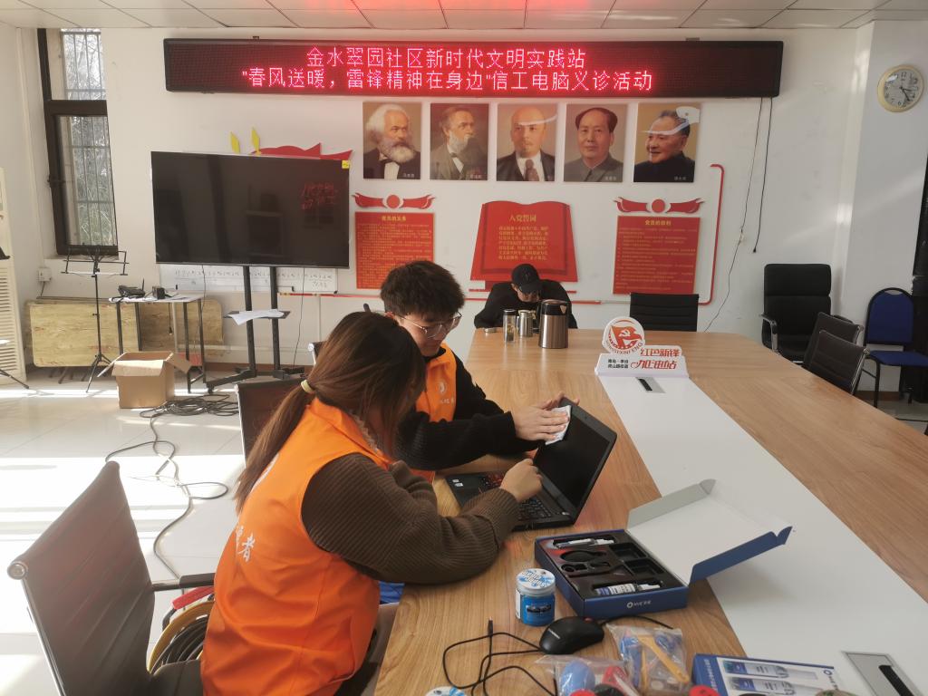 继校园电脑义诊活动顺利开展之后,3月14日,信息工程系组织学生志愿者走进青岛市李沧区金水翠园社区开展“春风送暖,雷锋精神在身边”电脑义诊活动。