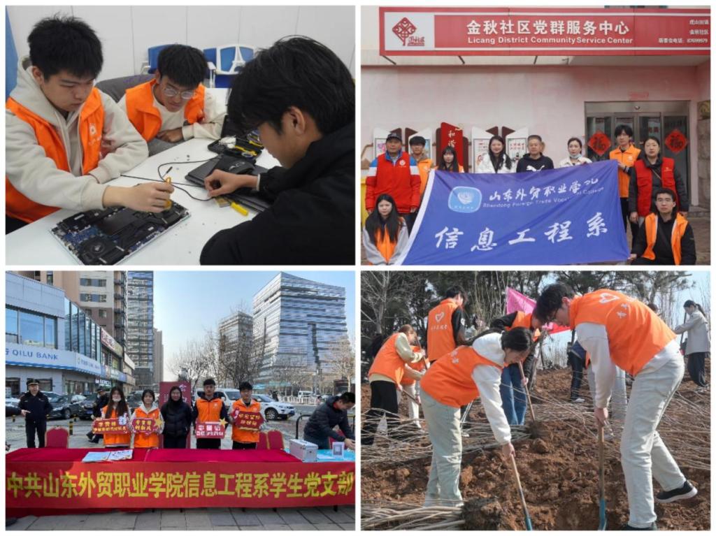 在本次美德主题教育月中,信息工程系团总支牵头举办了丰富多彩的美德主题校园文化活动,包括“美德辩论,展现光芒”主题辩论赛、“美德风采,海报传情”海报设计活动等,学生在思想碰撞中明德悟理,在创意巧思中畅绘中华传统美德。信息工程系学生志愿者开展了“春风送暖,雷锋精神在身边”电脑义诊活动、“守护银龄,防范电信网络诈骗”知识宣传活动、社区志愿服务大集活动、“植绿未来,树起希望”义务植树活动等一系列志愿服务活动,信工学子在志愿服务中展现青春风采,勇担青年时代责任。