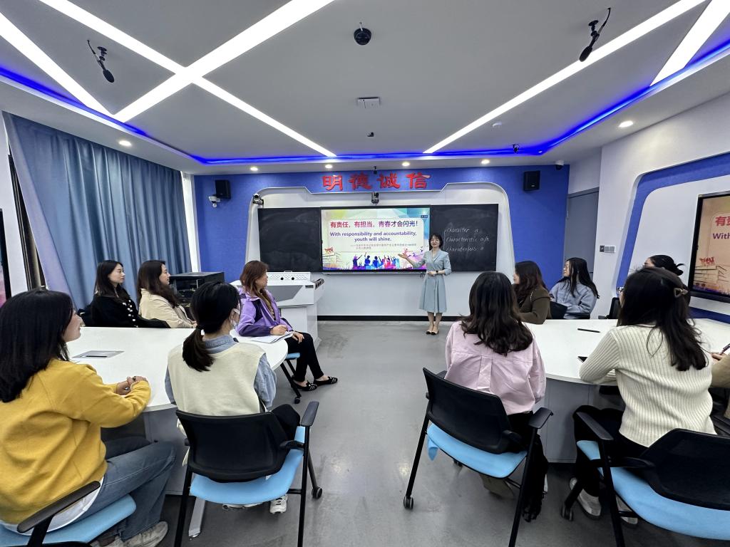 3月25日和4月8日下午,公共英语部在2号教学楼智慧教室组织山东省第十一届高校青年教师教学比赛复赛赛前观摩教研活动。参赛青年教师王海霞现场模拟课堂授课,17名青年教师观摩学习。