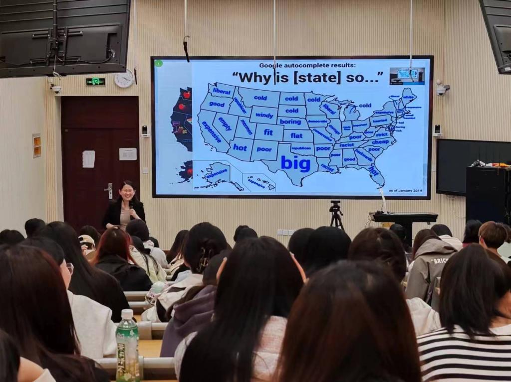 23日,苗兵以“英语口语趣中练 (Ways to practice Spoken English efficiently and enjoyably)”为主题,通过实例列举了学生在英语口语表达中的常见错误,分享了提高口语水平的关键要素,提醒学生不仅注重基础知识的积累,还要通过大量实践提高表达能力。24日,徐秀峰讲座的主题是“中国情怀,世界眼光--我的美国见闻录(Rooted in China, Vision for the World)”。徐秀峰结合美国高校的校园生活及师生学习模式、美国社会生活等各方面的现状,从访问学者的角度解读了美国现行教育体系的特点以及中美文化融合等情况。