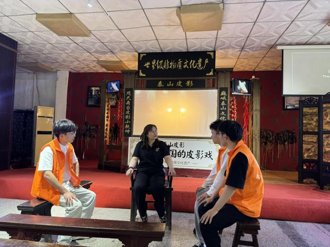 在此次社会实践活动中,团队成员与泰山皮影第八代传承人、泰山皮影艺术团团长闫冬梅进行了深入交流,并在其带领下参观了泰山皮影博物馆,了解了泰山皮影的发展历史、制作工艺和表演形式。随后,团队成员一同观看了泰山皮影经典剧目《泰山石敢当大战恶狼精》《鹤与龟》与创新剧《江南style》,并亲自尝试操纵皮影以及体验皮影的制作,亲身体验这一传统艺术的魅力。