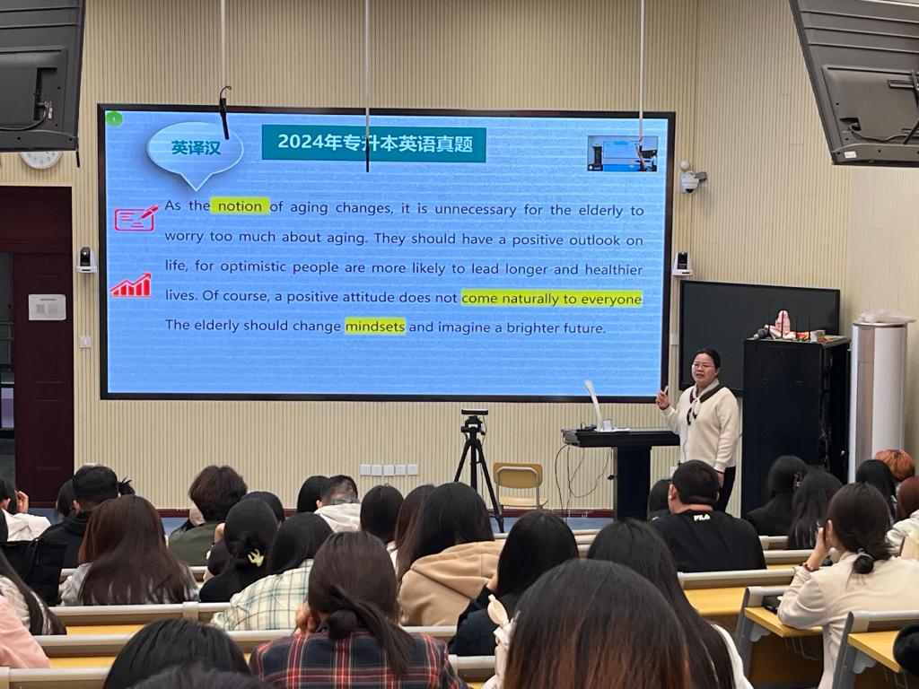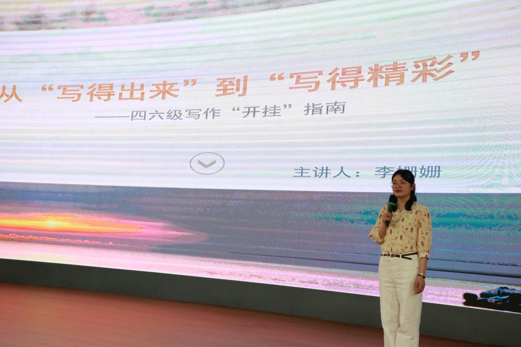 系列讲座围绕大学英语四六级口语、英语写作和专升本英语备考策略进行。李夏结合历年英语四六级口语真题,详细解析了各个题型的做题技巧,从语言组织、观点表达和有效沟通等方面,进行了深入浅出的讲解,使学生不仅对考试有了清晰的认识,也掌握了实用的备考方法。李姗姗针对考生在英语写作中“下笔难言”等痛点,从阅卷人的视角介绍了四六级作文的阅卷评分标准,强调灵活表达以及如何根据上下文推断题眼并避免套用网络模版的重要性,提醒考生平时扩大阅读面,内化成文字表达。张敏以专升本英语真题作为切入点,通过题型的分析和现场真题演练,讲解了备考策略,建议考生在日常学习中注重词汇的积累、翻译技巧的掌握和作文常见逻辑词的运用,帮助学生明确备考方向。各讲座期间安排了形式多样的互动环节,现场气氛热烈。