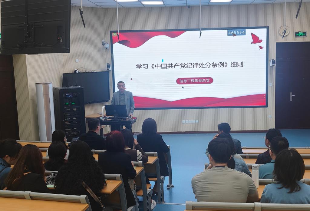 为推动党纪学习教育走深走实,信息工程系党总支统筹策划、精心组织,丰富学习形式,强化警示作用,开展“学党规党纪、守廉洁自律”系列党纪学习教育,把党纪学习教育深化于学、内化于心、外化于行。