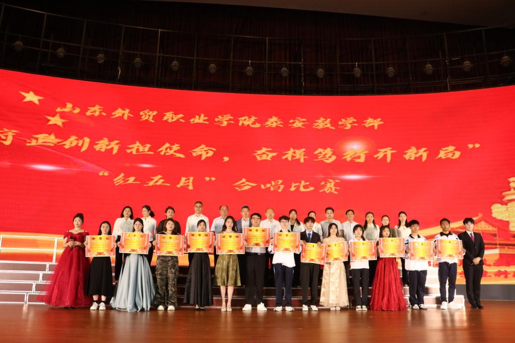 此次比赛不仅是学生学习思想政治课的一种课外实践体验,更是一个展现学生自身魅力和艺术才华的绝佳平台。在近两个月的备赛中,业余时光的校园被美好嘹亮的歌声充满着,句句歌词融化成对党的热爱、对祖国的赤诚之心、对美好生活的向往。经过全部教学班初赛的激烈比拼,共有14个班级进入决赛。最终,23国贸6班、23商英3班获得一等奖;23国贸1班、23泰安国贸3班、23商英2班、23商英6班、23物流1班获得二等奖,23商英5班、23泰安国贸2班、23国贸4班、23泰安电商1班、23泰安营销2班、23会计2班、23跨境电商1班获得三等奖。