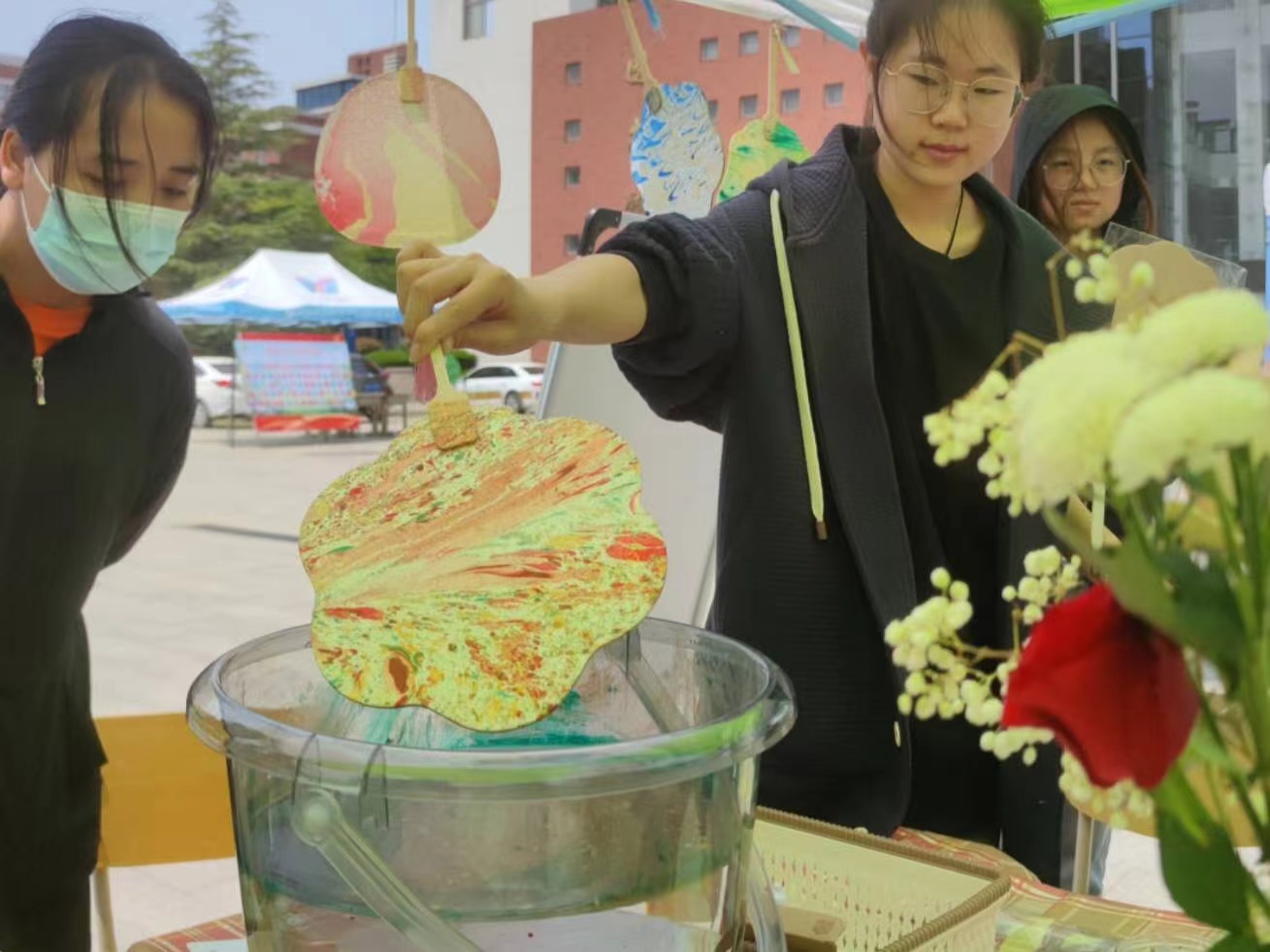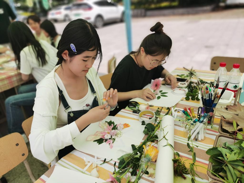 在“OH卡时光”里,同学们透过小小卡牌的联想与解读,觉察“别人眼中”与“自己眼中”的自己,尝试与潜意识联结;在“正念冥想”活动中,同学佩戴VR眼镜,身临其境般聆听风穿竹林,漫步海边沙滩……放松心情,感知当下,深刻感受正念与科技融合的魅力;在“沙游体验”环节,同学们由专业老师带领下抚沙、玩沙、摆放沙具,感受内在的流动与美好;在“创意曼陀罗”活动中,同学们与鲜花、树枝、树叶等大自然素材亲密互动,一幅幅精美的曼陀罗图案跃然纸上,令人充分感受到大自然带给自己的生命力量;在“画扇愈心”活动中,同学们精心挑选心仪的扇形,浸染独属自己的扇面纹理,一把把漆扇如同在场每个人,都是独一无二的绝版……