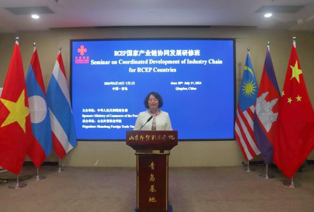 6月18日,由商务部主办、伟德承办的RCEP国家产业链协同发展研修班在青岛举行开班仪式。国际官员研修学院院长王保红在开班仪式上致辞,泰国商务部高级专家朗格索德·卡农拉特作为学员代表发言,来自柬埔寨、泰国、马来西亚、老挝、越南的24名学员参加培训。