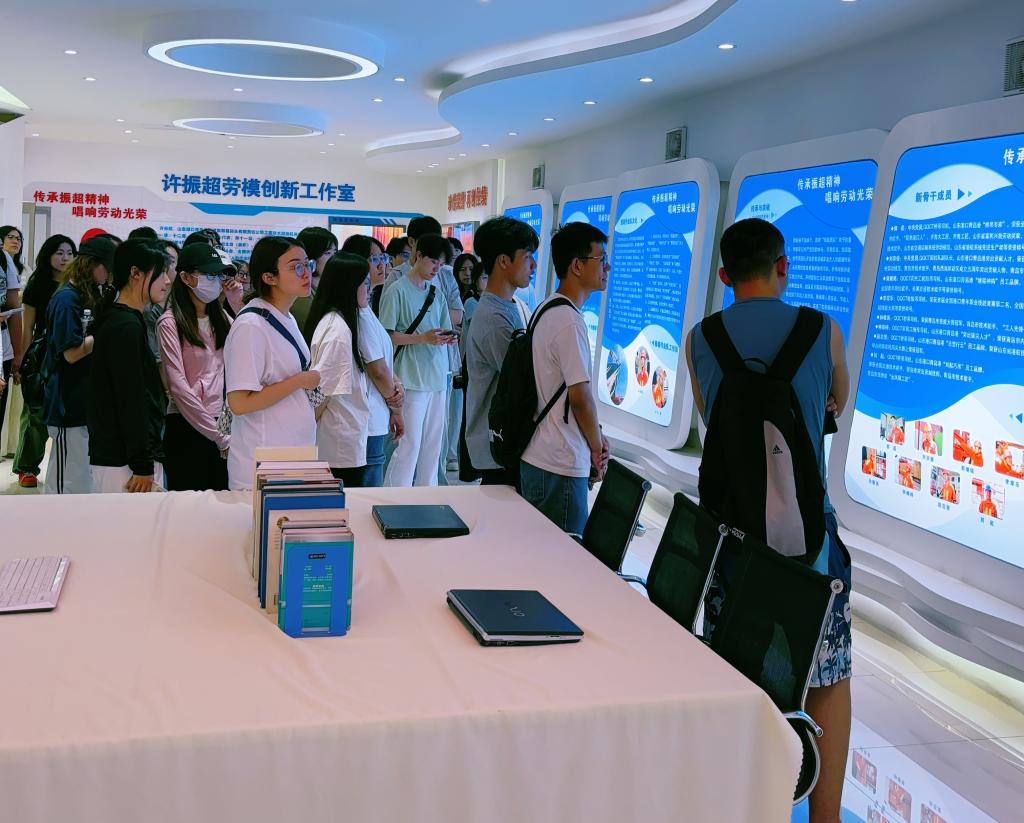在许振超劳模创新工作室,师生感受到产业工人代表立足岗位、扎实奉献、勇于创新的工匠精神。