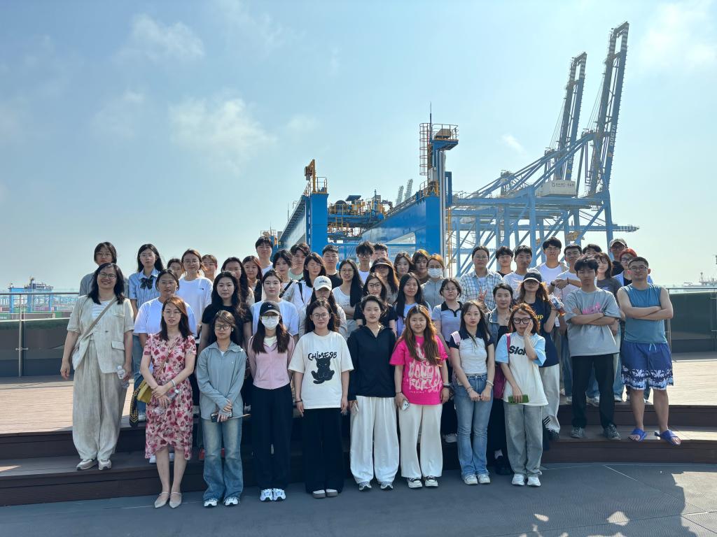 在前湾港区,师生共同学习了山东港口的基本情况和发展历程,了解到山东港口在党建引领下,坚持“以人民为中心”,践行服务国家发展战略、服务山东高质量发展、服务客户和员工的三个使命,阔步迈向世界一流海洋港口的不懈追求。