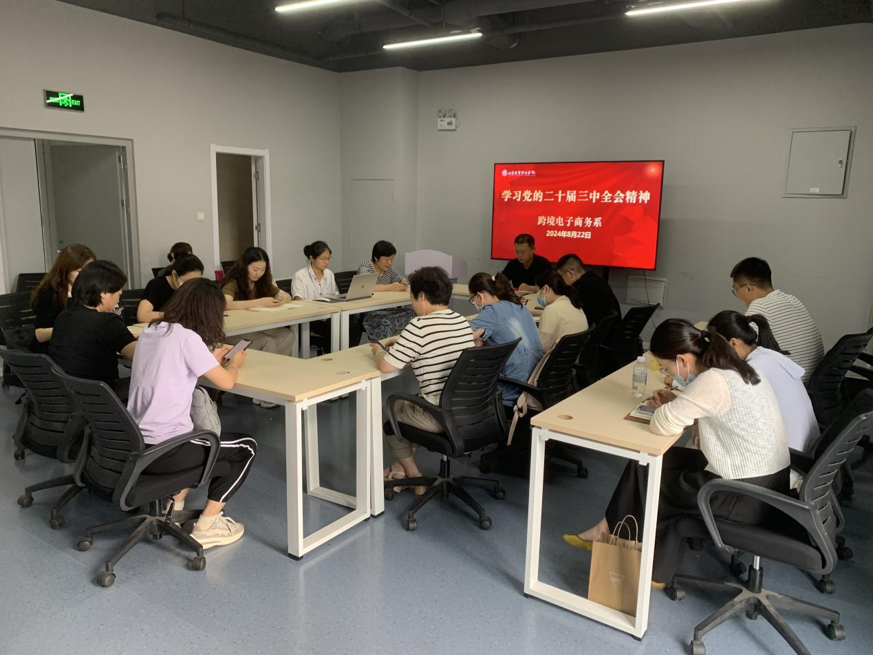 8月22日,跨境电子商务系举行党的二十届三中全会精神专题学习会,集中学习了中国共产党第二十届中央委员会第三次全体会议公报和教育部怀进鹏部长“围绕成为科技创新策源地和人才培养主阵地,推动教育理念、体系、制度、评价、治理等变革”的访谈记录。跨境电子商务系全体教师参加了学习会,党总支书记李军主持会议。