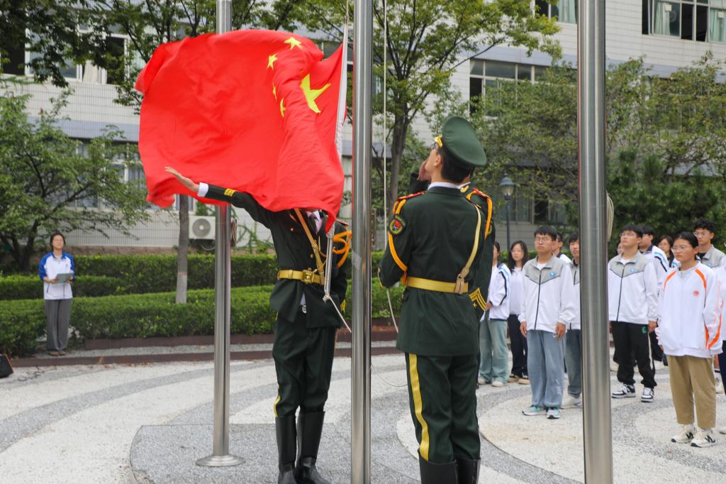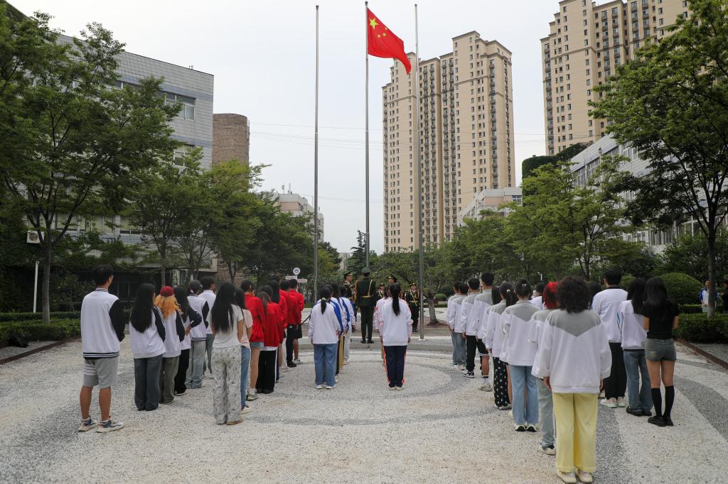 8月26日清晨,学院在1号教学楼前国旗广场举行新学期升旗仪式。院系两级团学组织成员及学生代表参加。